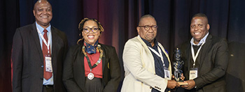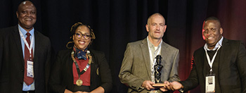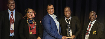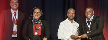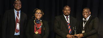 Dr Joseph Matjila, Manager Safety and Health at Exxaro receiving the awardon behalf of the combined winners.